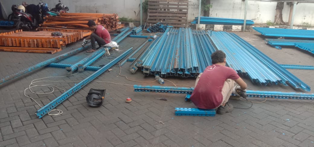 Pekerjaan pemotongan bracing dan painting frame di PT. Gotrans Logistics International meliputi pemotongan bracing sesuai kebutuhan teknis, dilanjutkan dengan proses pengecatan frame menggunakan material cat berkualitas untuk melindungi struktur dari korosi serta meningkatkan kerapian dan tampilan.