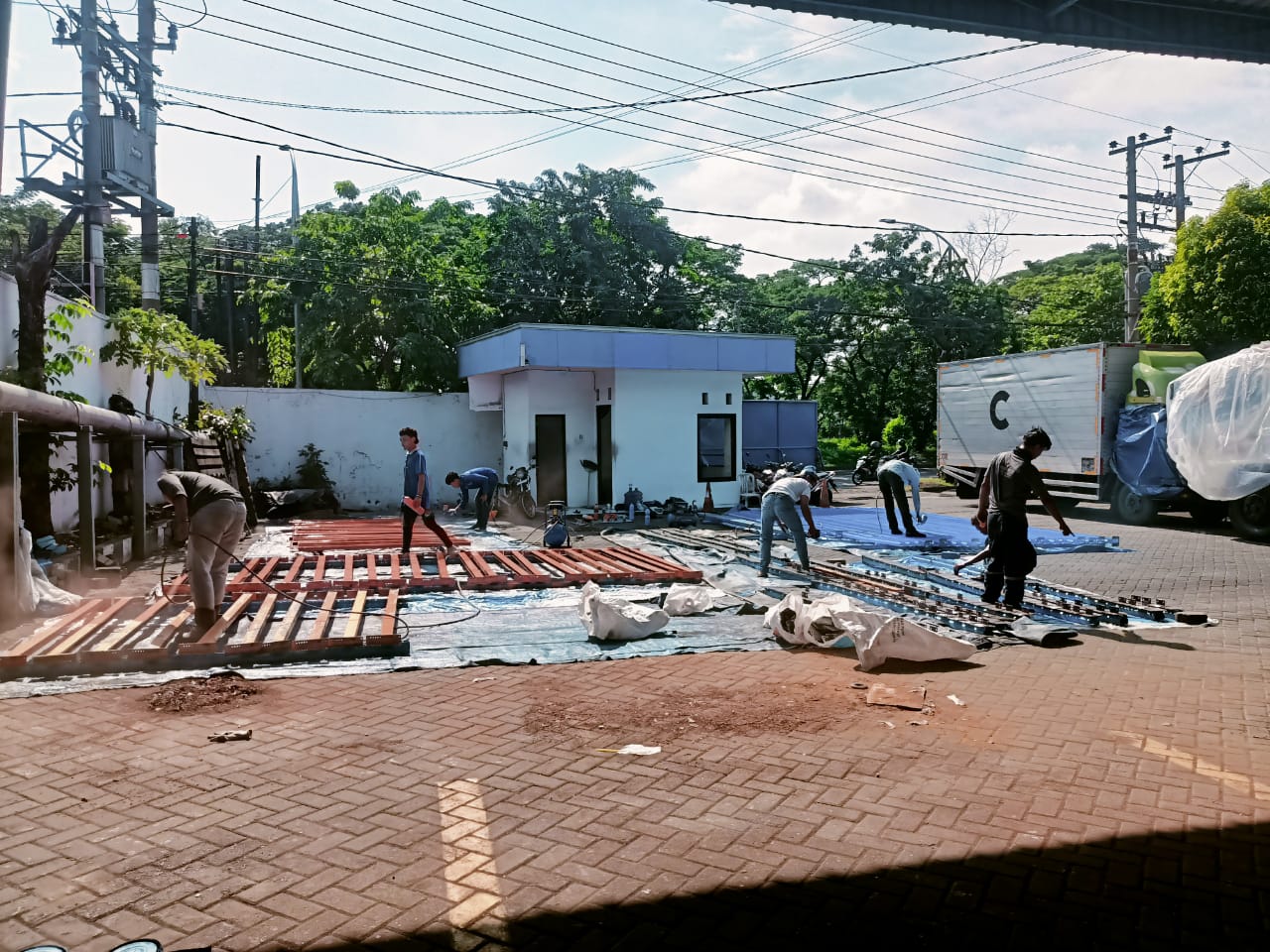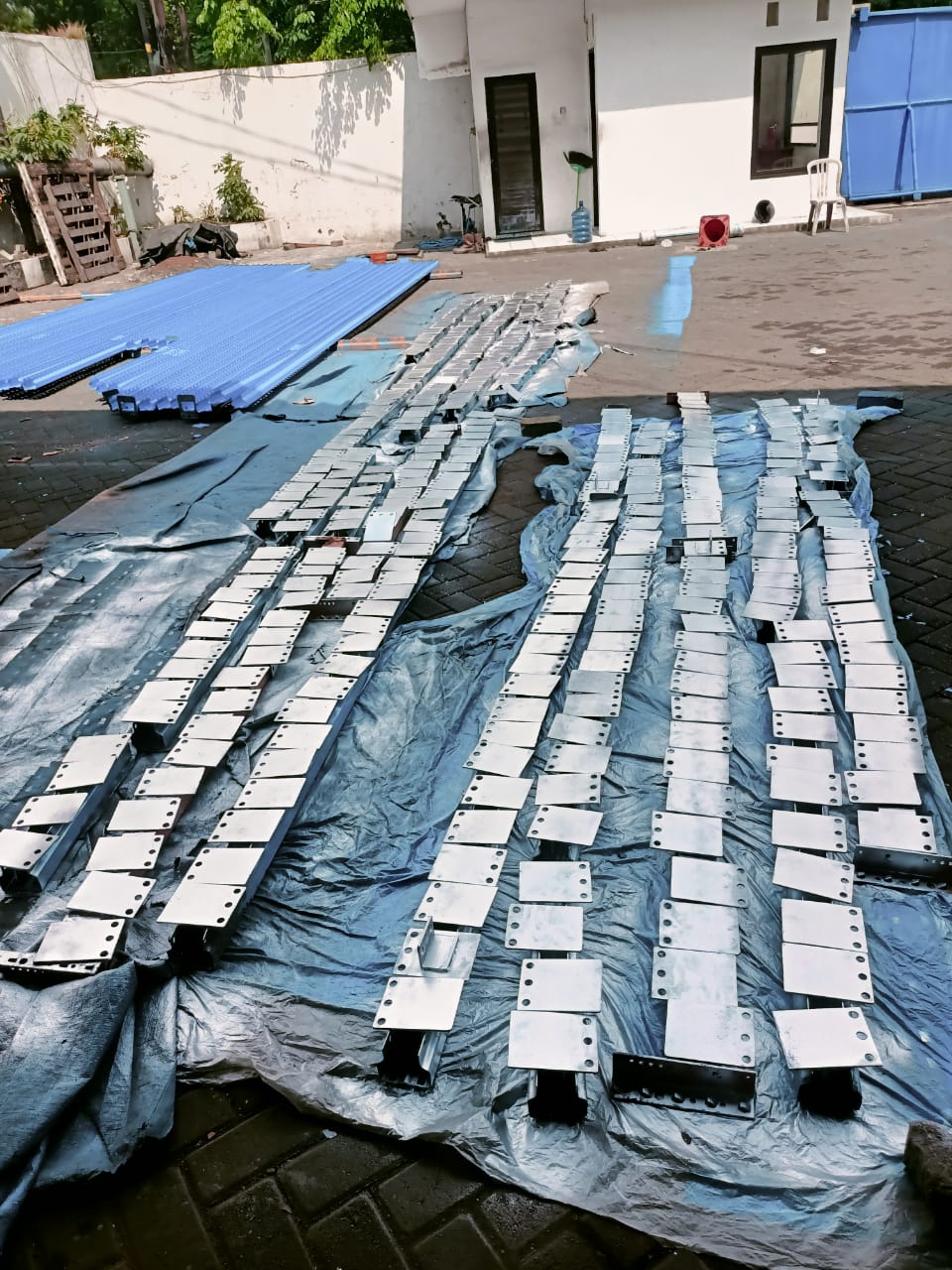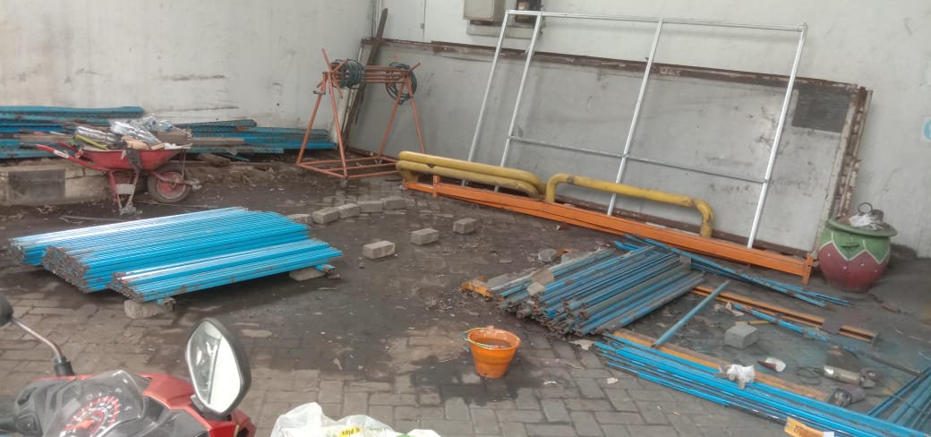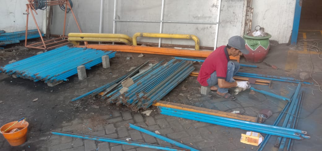 Pekerjaan pemotongan bracing dan painting frame di PT. Gotrans Logistics International meliputi pemotongan bracing sesuai kebutuhan teknis, dilanjutkan dengan proses pengecatan frame menggunakan material cat berkualitas untuk melindungi struktur dari korosi serta meningkatkan kerapian dan tampilan.